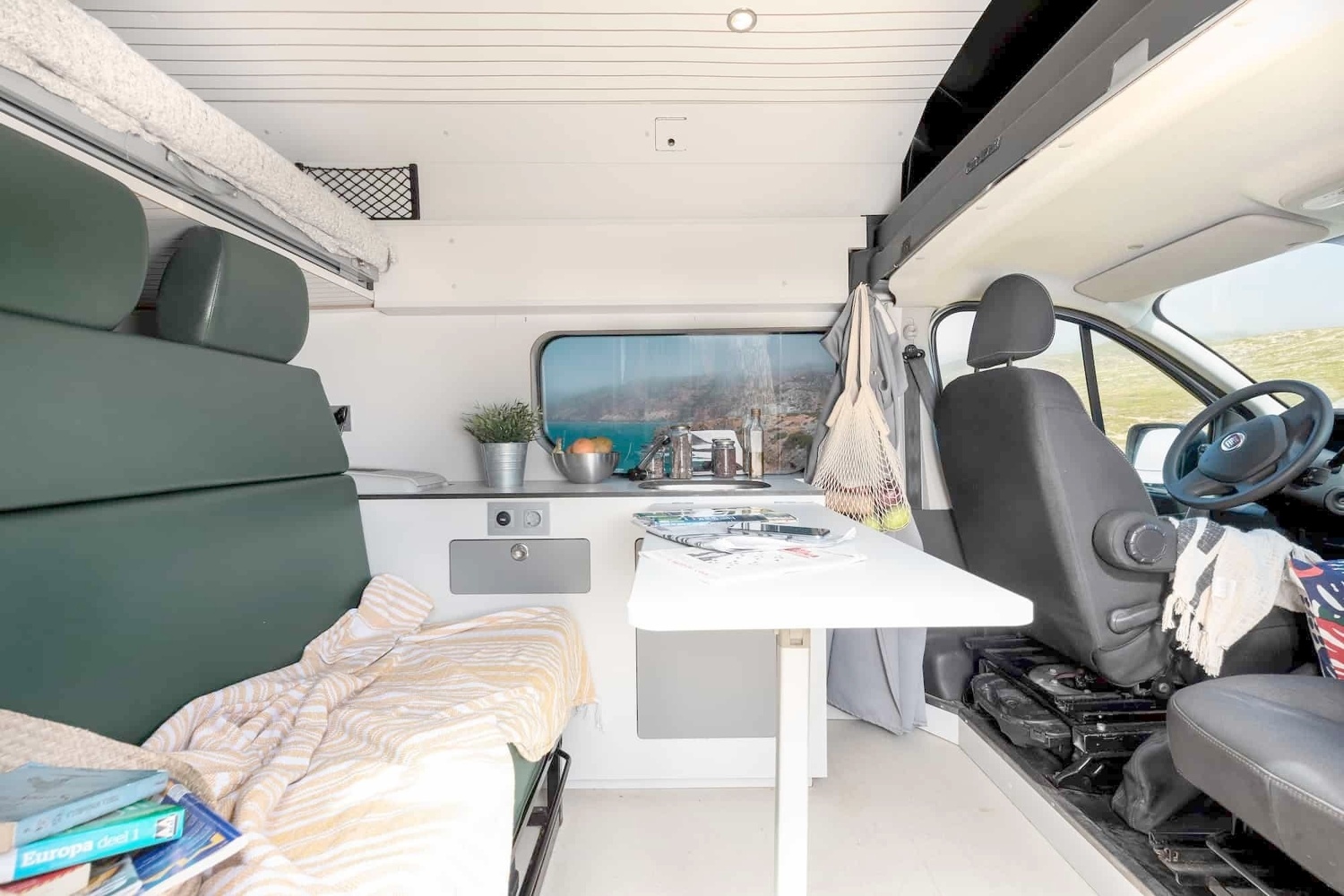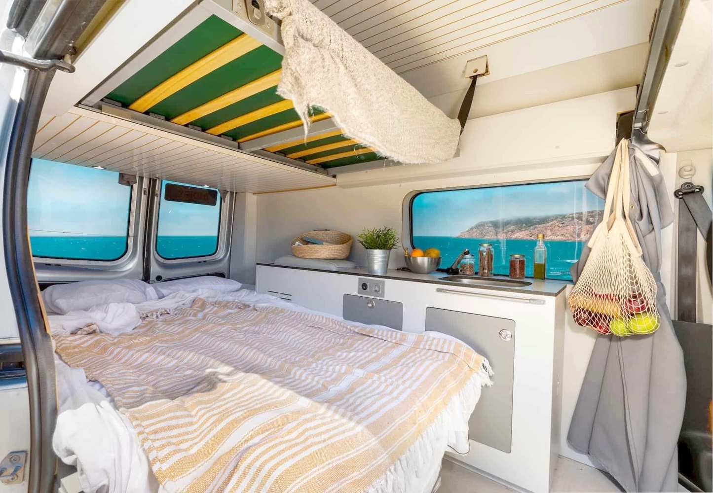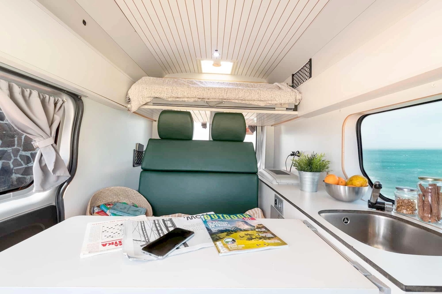 Ein kompakter Van, der für große Abenteuer gemacht ist und alle Funktionen für eine unvergessliche Reise hat! Das Fahrzeug beinhaltet ein Küchen-Set, eine Kühlbox, eine Außendusche (Heck), eine Küchenzeile mit Spüle, einen Esstisch im Innenbereich, ein Reinigungsset und einen tragbaren Gaskocher. Du kannst auch dein Handy (oder andere Geräte) aufladen und deine Lieblingsmusik hören, denn das Modell verfügt über ein Radio mit AUX- und USB-Anschlüssen.