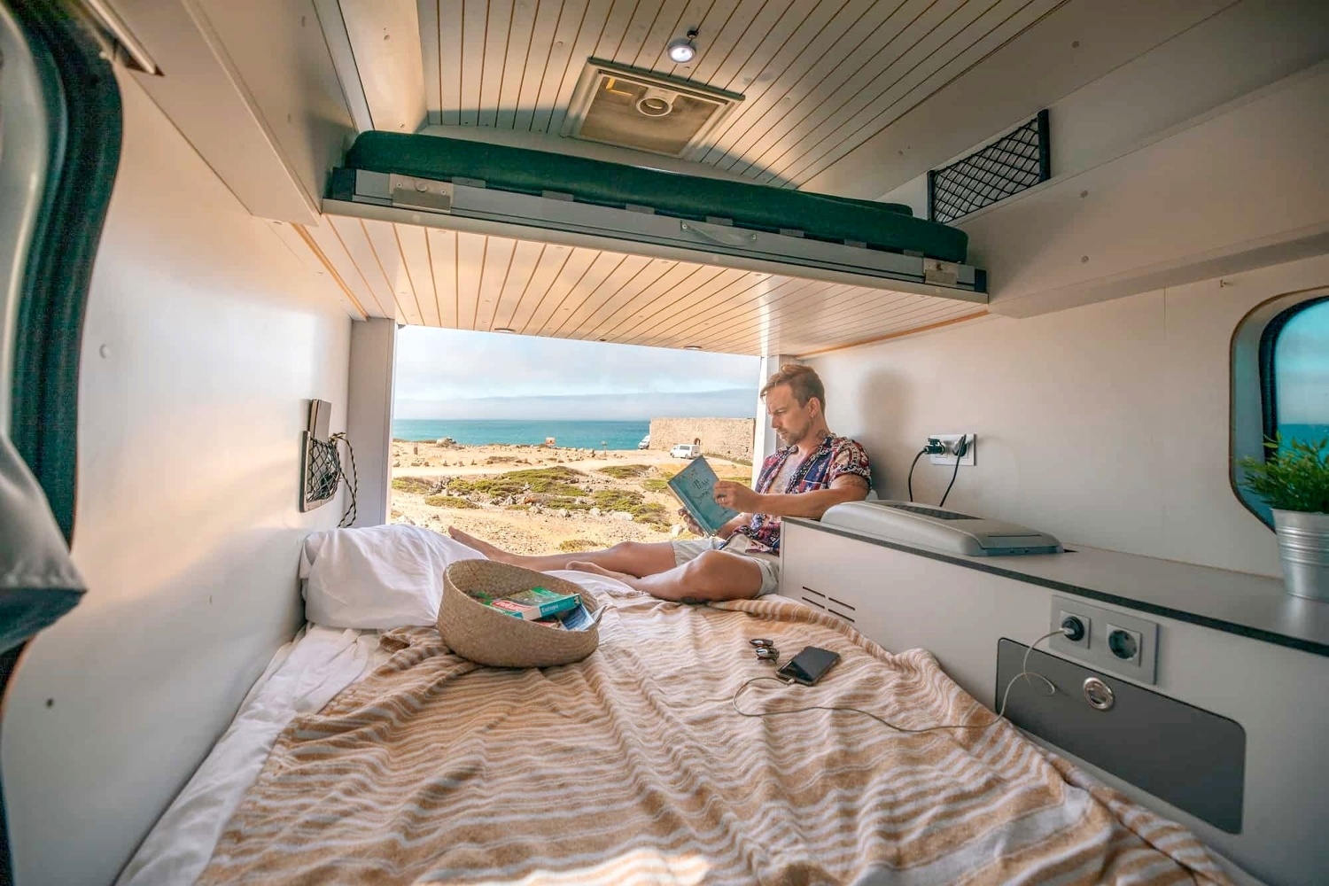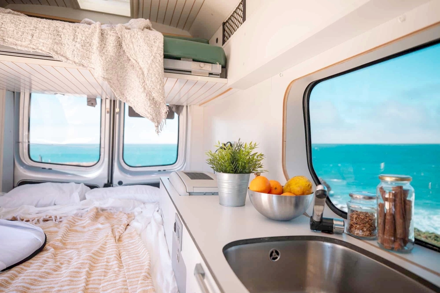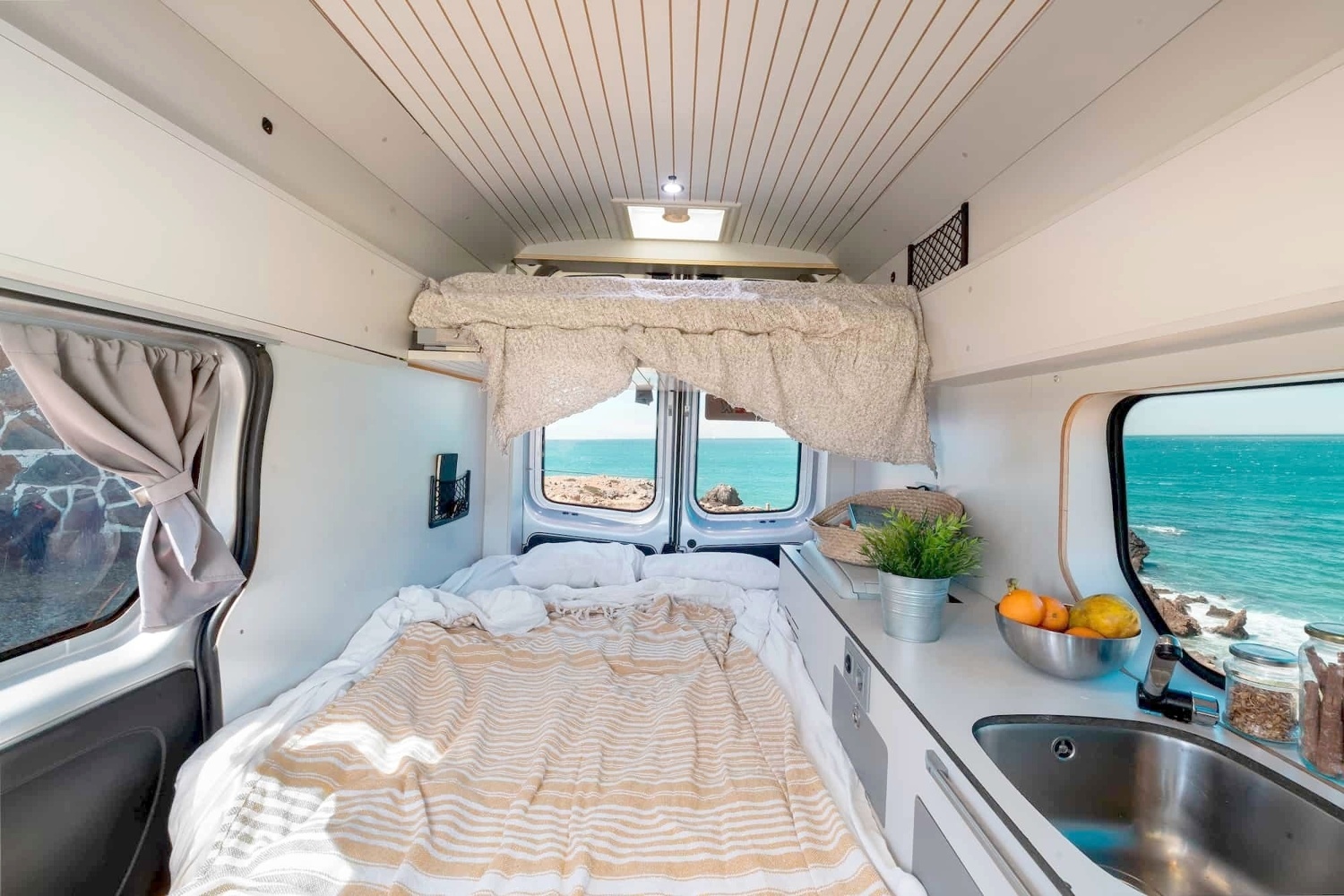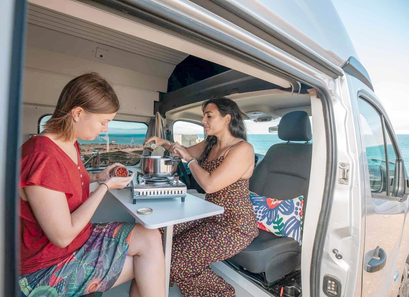 Ein kompakter Van, der für große Abenteuer gemacht ist und alle Funktionen für eine unvergessliche Reise hat! Das Fahrzeug beinhaltet ein Küchen-Set, eine Kühlbox, eine Außendusche (Heck), eine Küchenzeile mit Spüle, einen Esstisch im Innenbereich, ein Reinigungsset und einen tragbaren Gaskocher. Du kannst auch dein Handy (oder andere Geräte) aufladen und deine Lieblingsmusik hören, denn das Modell verfügt über ein Radio mit AUX- und USB-Anschlüssen.
