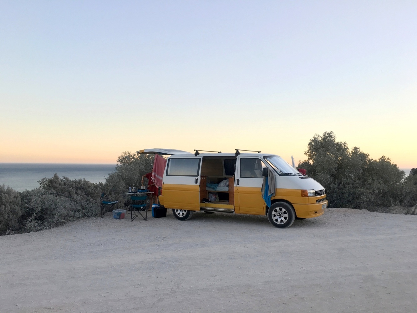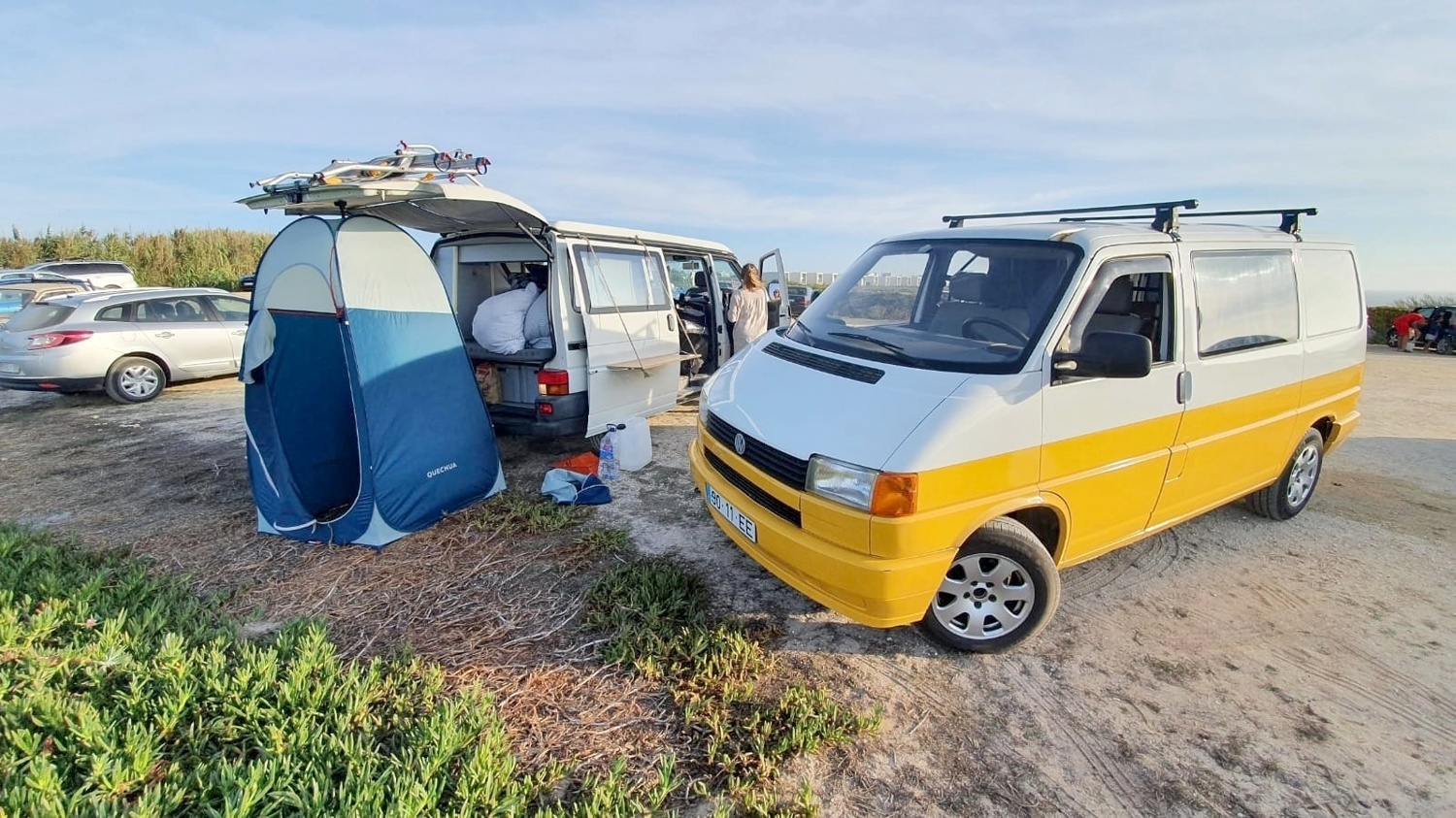 This campervan will give you some unforgetable time discovering Portugal. It's a small van, perfect for a couple, that can park everywhere and with a nice couple bed and some utensils for cooking small meals or make you own coffee or tea.