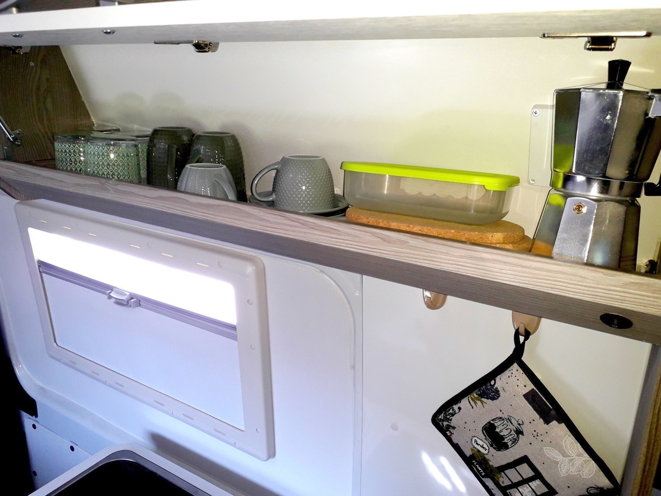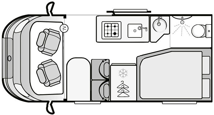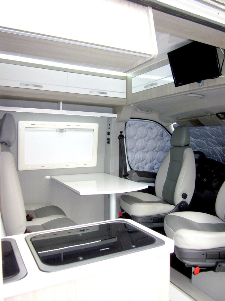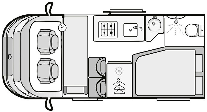 An der Vorderseite des Fahrzeugs gelegen, ist es besonders für Kinder oder als Zusatzbett geeignet. Es wird oft durch Absenken des Wohnzimmertisches eingerichtet.