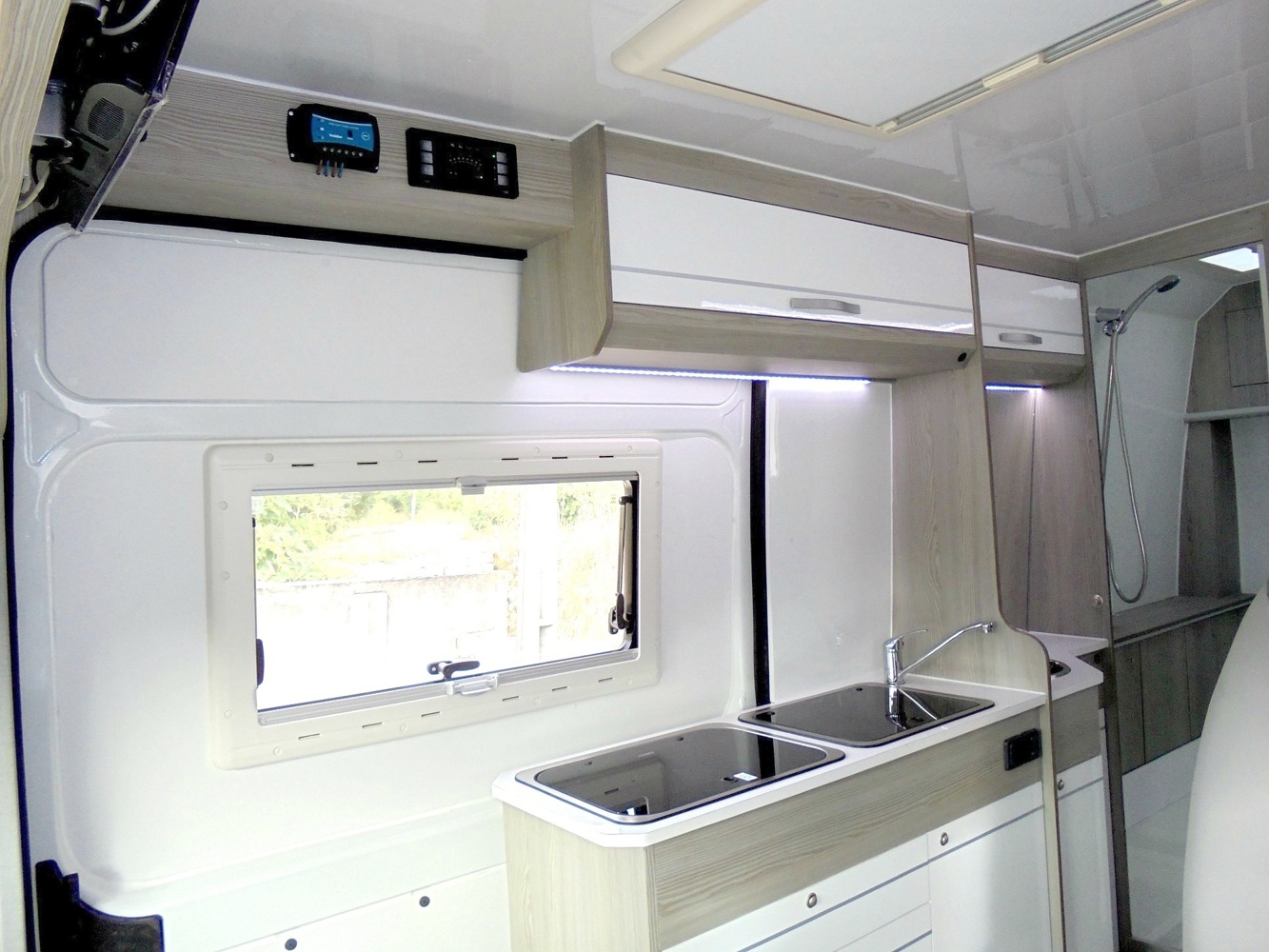 Befindet sich im hinteren Teil des Fahrzeugs in einer zentralen Position. Mit Zugang von beiden Seiten des Bettes, ist dies die Art von Bett, die maximalen Komfort bietet.