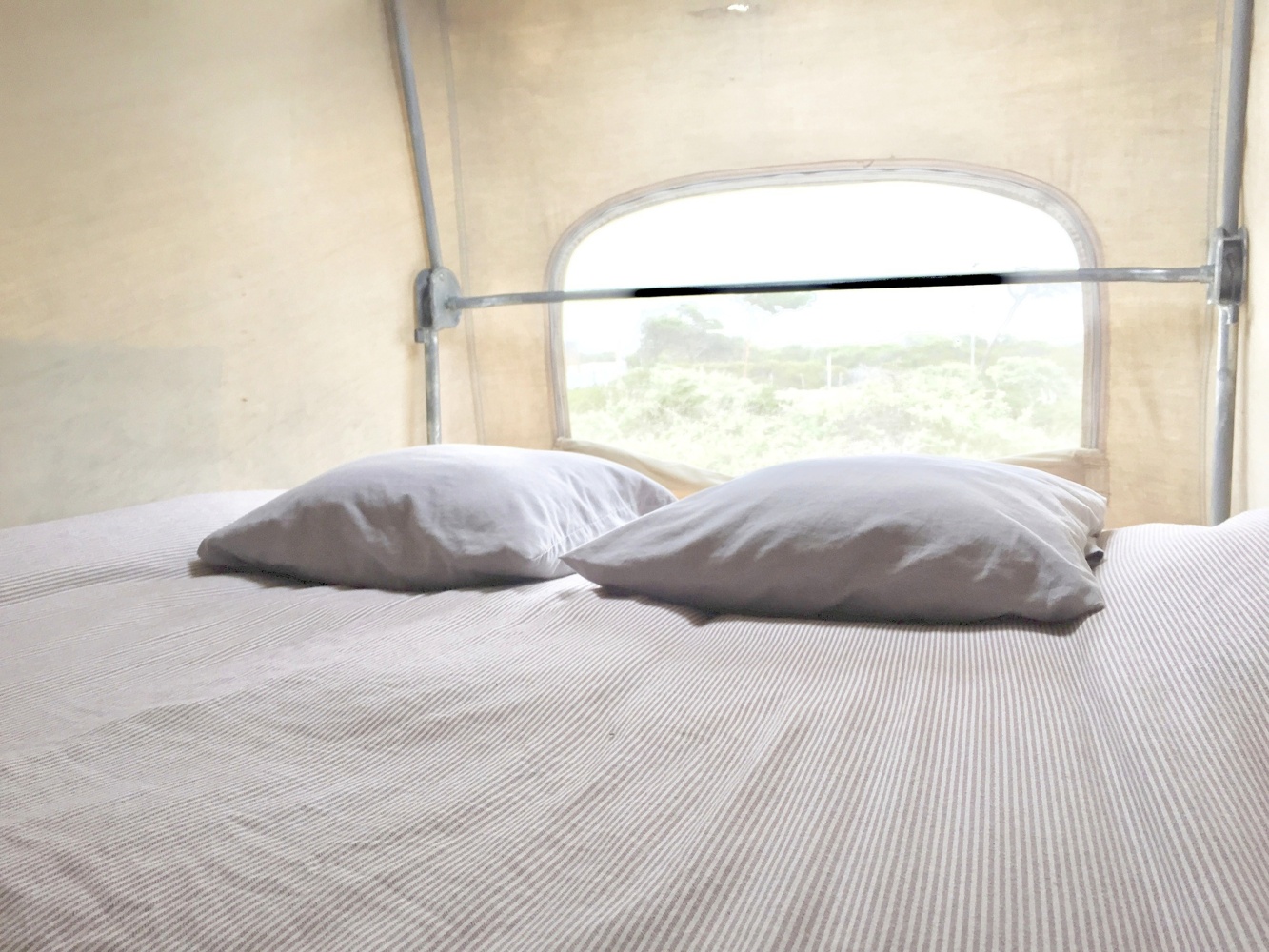 CHERRY pode transportar 5 pessoas e tem 2 camas de casal. Uma na parte de baixo e outro na parte superior (podes abrir quando estacionas e fechar quando estiveres a conduzir). Esta caravana tem uma pequena geladeira para manter a comida e bebidas frescas, um fogão para preparar refeições e um lavatório com 12 litros de água para lavar alguns pratos. Uma pequena mesa e 2 bancos são fornecidos para possibilitar a sua refeição no exterior. Se precisares de carregar o teu telemóvel e laptop podes faze-lo com uma ficha que esta ligada à segunda bateria da caravana. Podes trazer a tua música numa pen ou CD´s para dssfrutares da tua viagem.