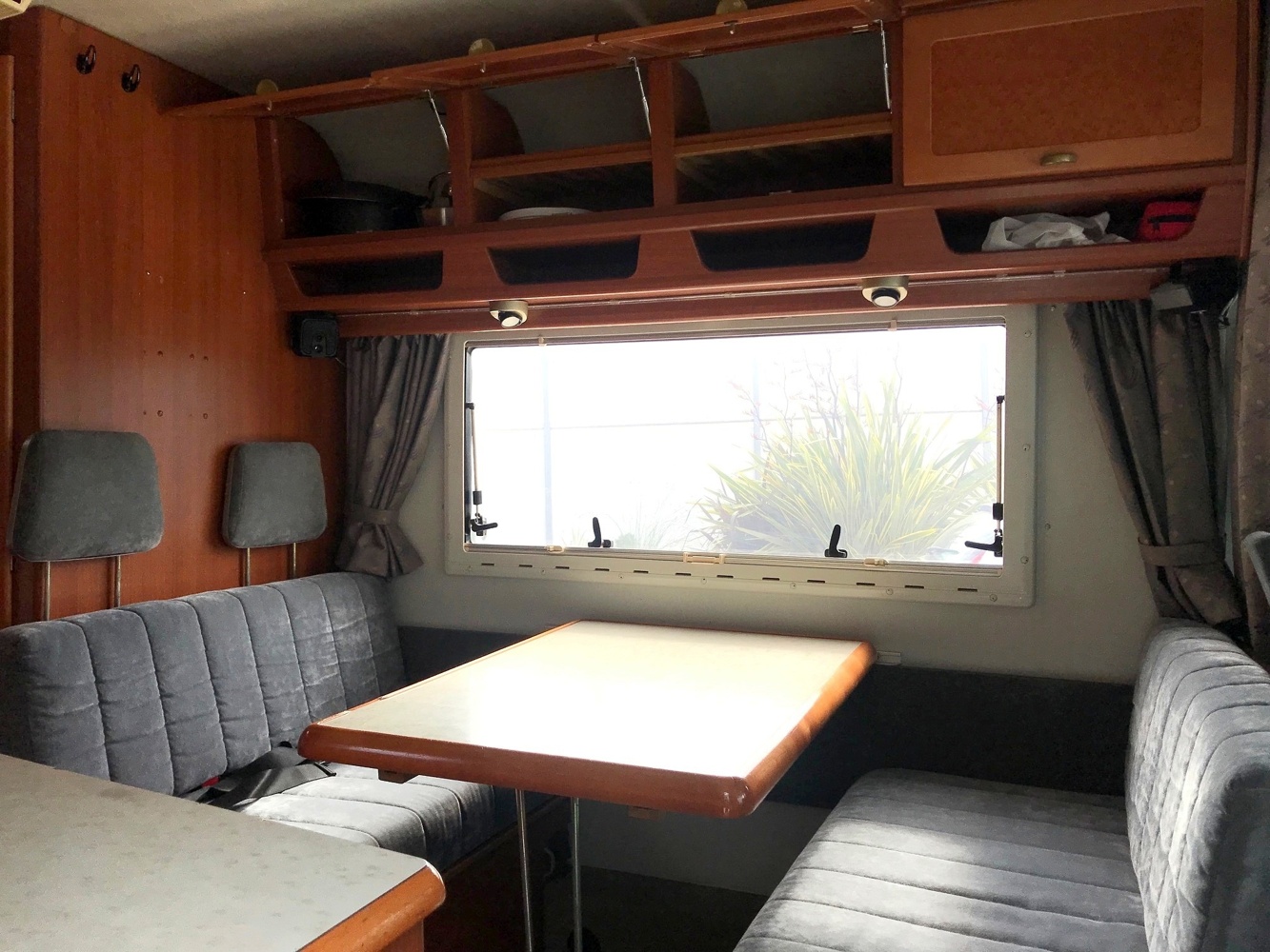 Befindet sich vorne über der Fahrerkabine und ist meist über eine Leiter zugänglich. Dieses Bett ist sehr komfortabel und beeinträchtigt den Wohnraum nicht.