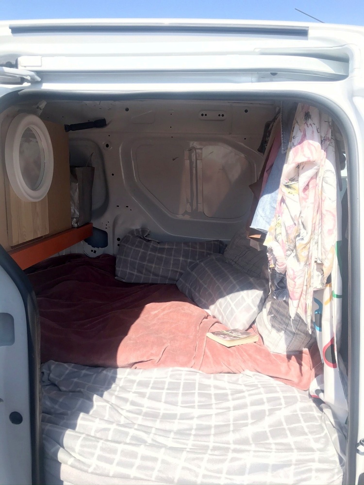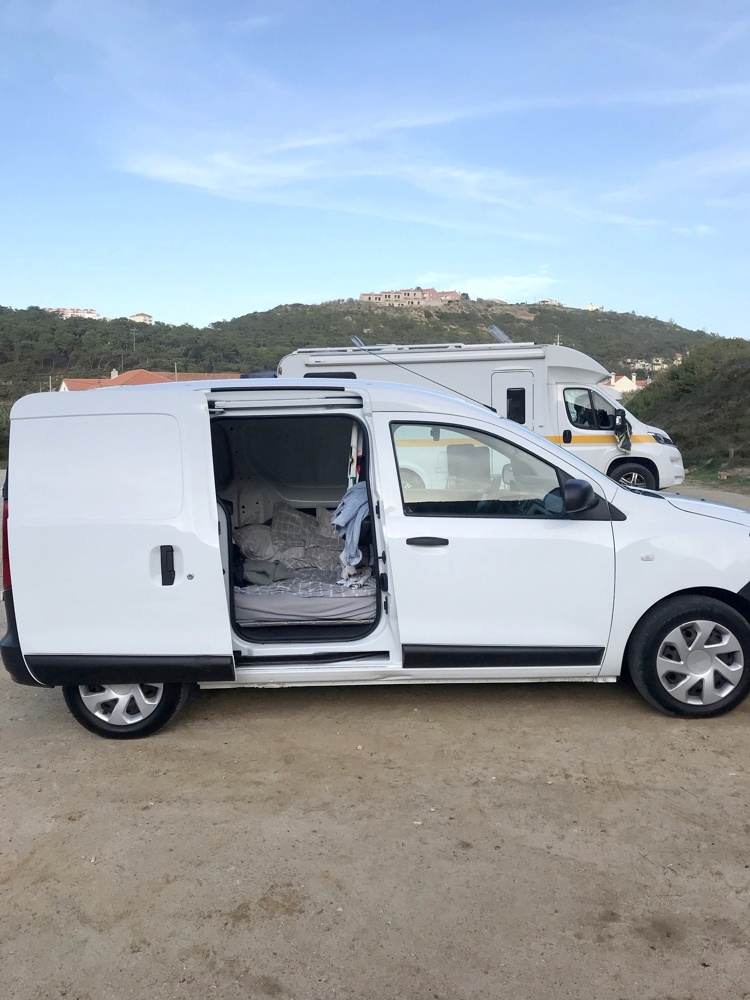 The van is plain but has everything you might need: bed linnen, duvets,towels, kitchen stuff, portable shower and even led lights inside. So it's perfect if you are an easy going person just like me!