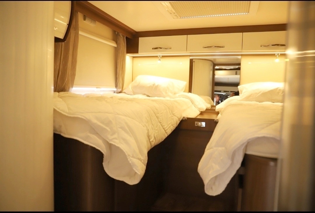 Befindet sich im hinteren Teil des Fahrzeugs in einer zentralen Position. Mit Zugang von beiden Seiten des Bettes, ist dies die Art von Bett, die maximalen Komfort bietet.
