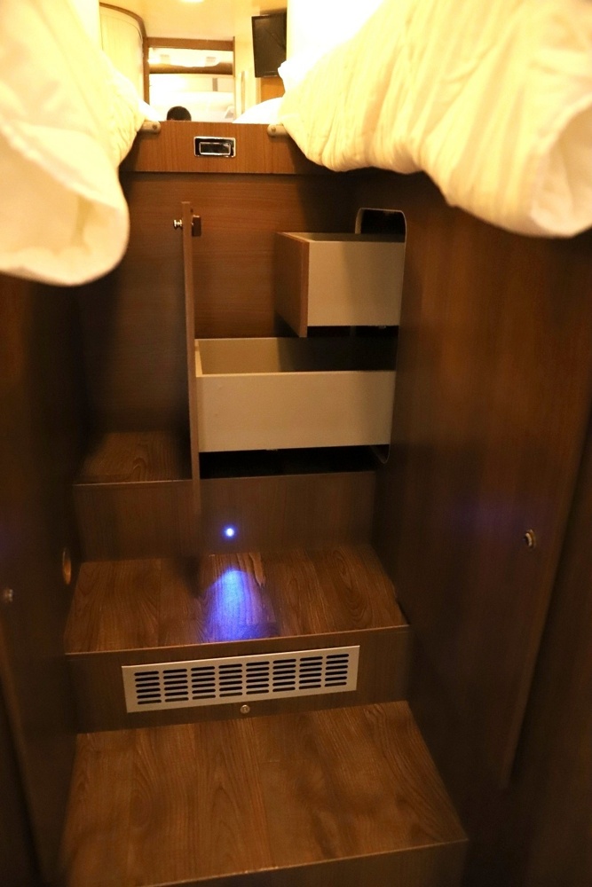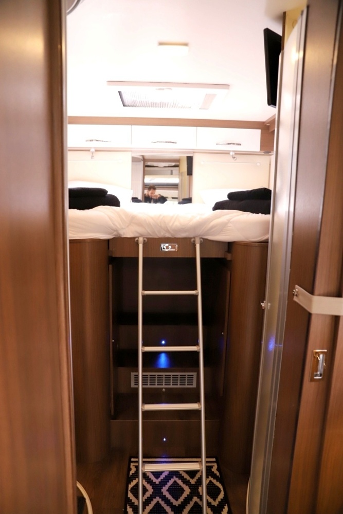 An der Vorderseite des Fahrzeugs gelegen, ist es besonders für Kinder oder als Zusatzbett geeignet. Es wird oft durch Absenken des Wohnzimmertisches eingerichtet.