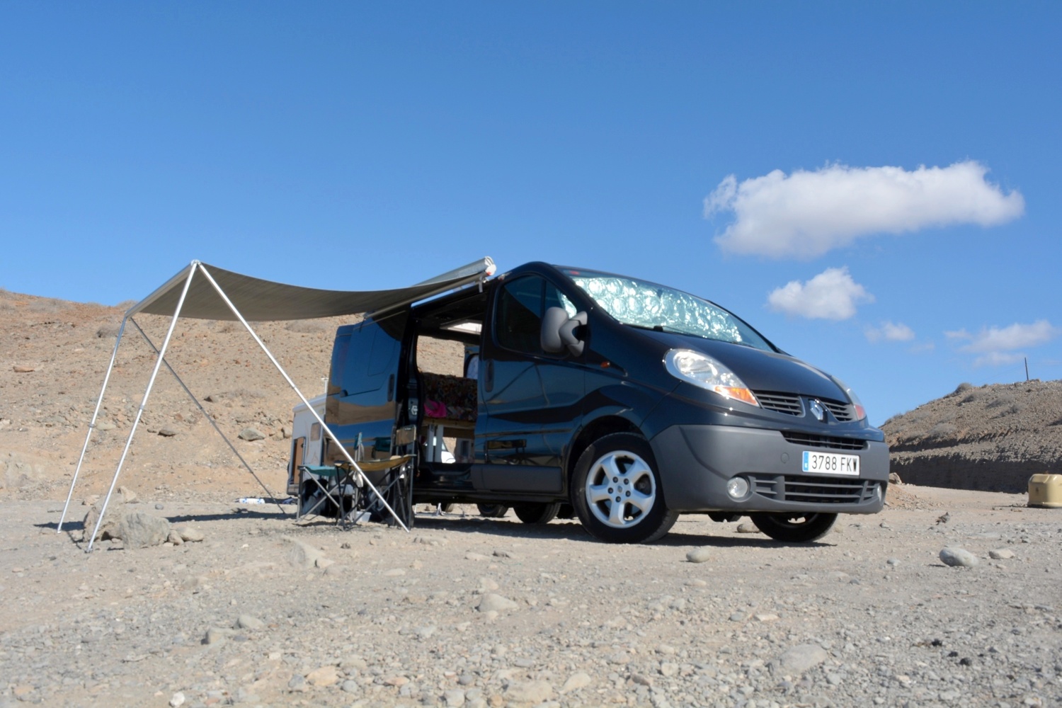 this is van has been completely hand converted, After years of holidays with all types of campers,we have decided to camperize a van from scratch,as we were well aware of the strengths and weaknesses of the models in circulation,we looked for to make an ok van for 2 People,without neglecting some comforts such as a bathroom, outdoor shower,a good fridge compressor,solar panel and 4 USB sockets,all whith a nod to a certain attention to detail,in short the perfect van for wild and lonely holidays on the beautifull island of gran canaria